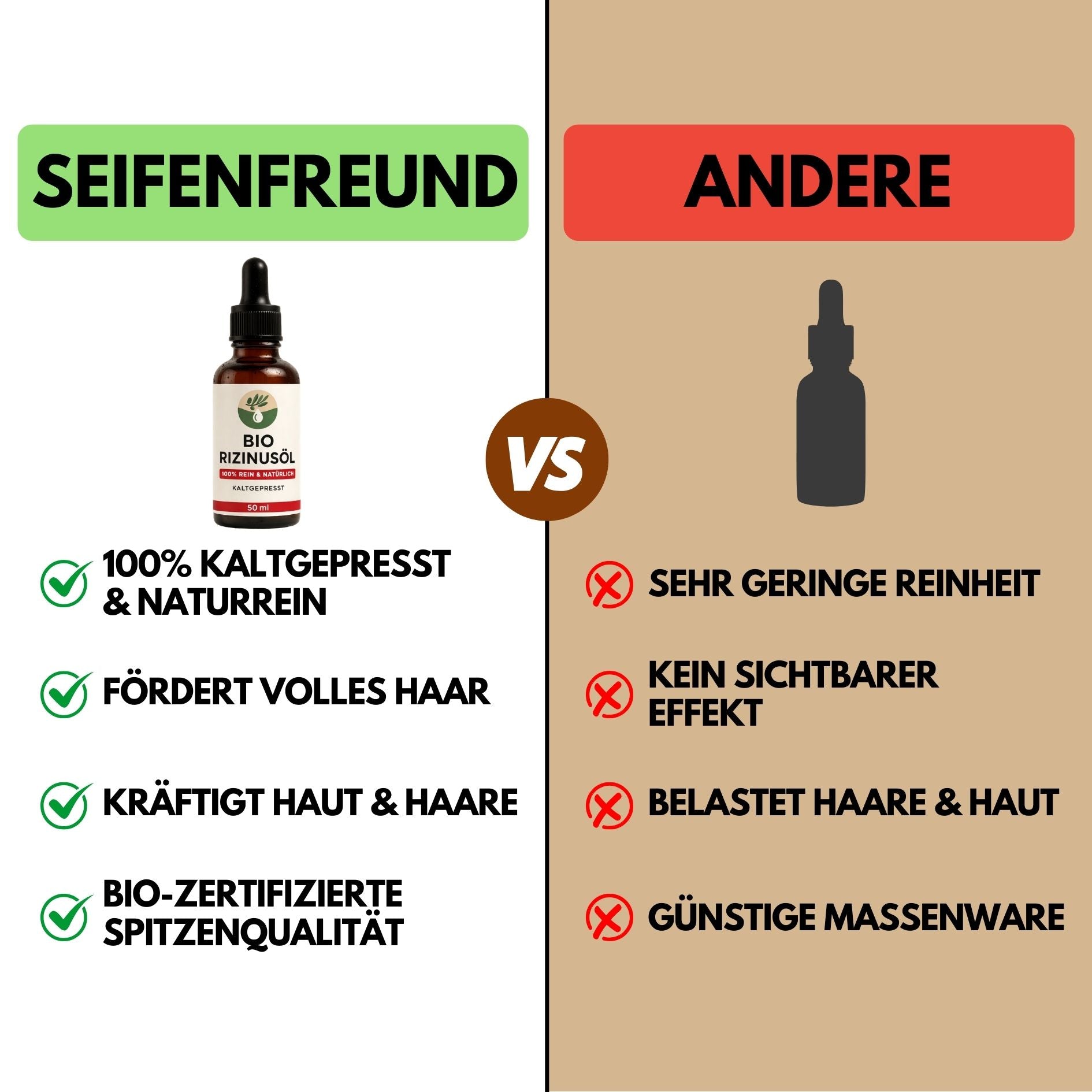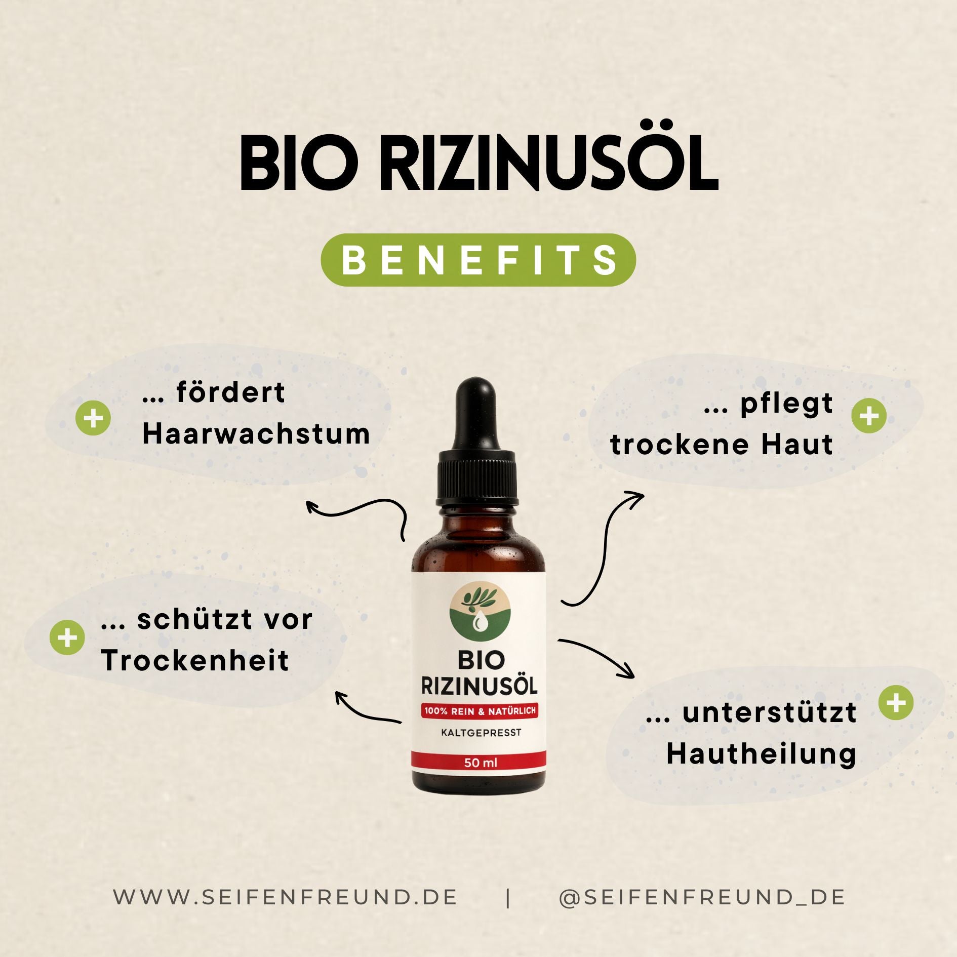 Tipp: Für beste Ergebnisse abends auftragen und über Nacht einwirken lassen – besonders bei Kopfhaut- oder Haarpflege. Rizinusöl wirkt langsam, aber sichtbar – Geduld lohnt sich! 🌿