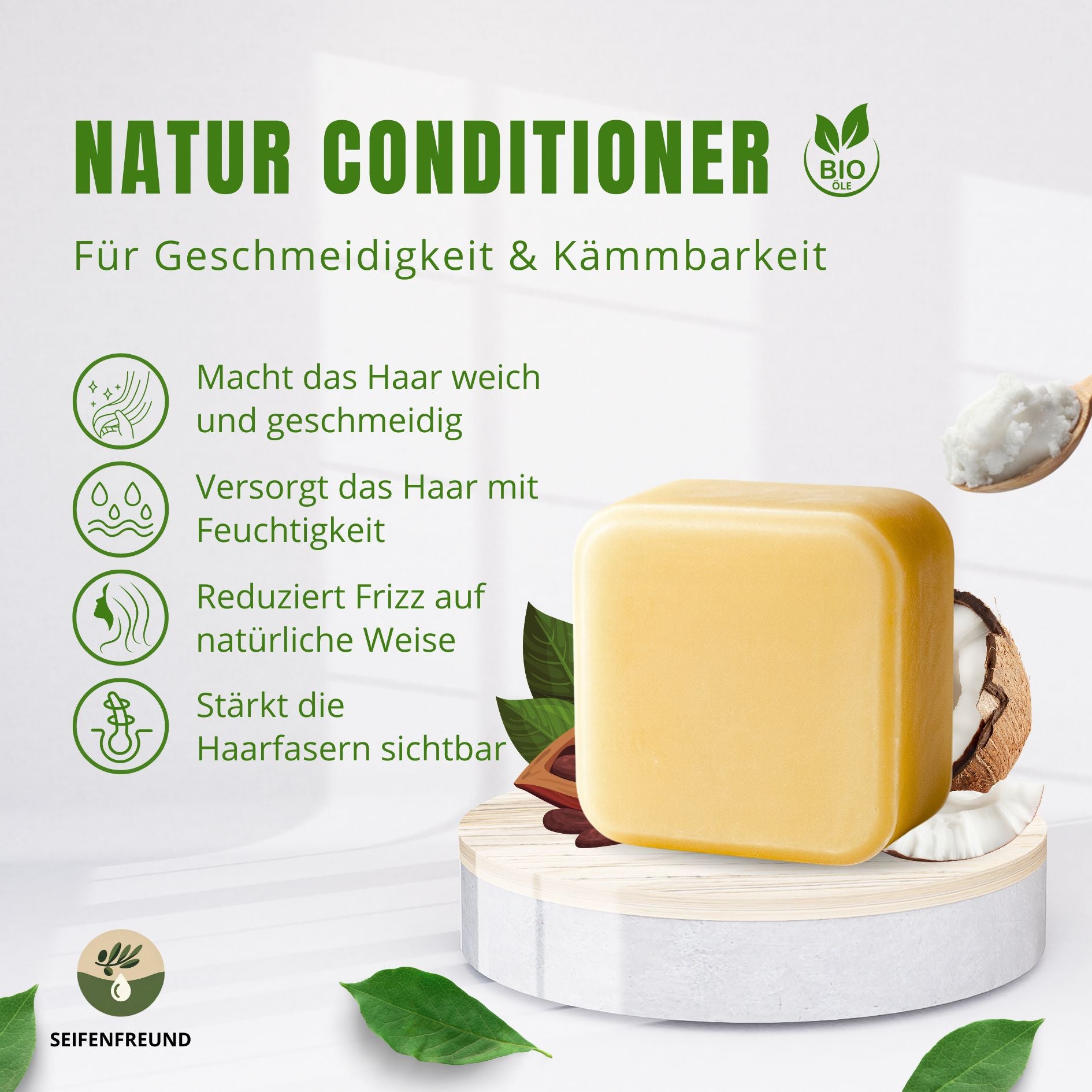 Tipp: Für beste Ergebnisse nach jeder Haarwäsche anwenden. Besonders praktisch auch auf Reisen: tropft nicht, läuft nicht aus und spart Platz - insbesondere in unserer praktischen Seifenbox! ✨