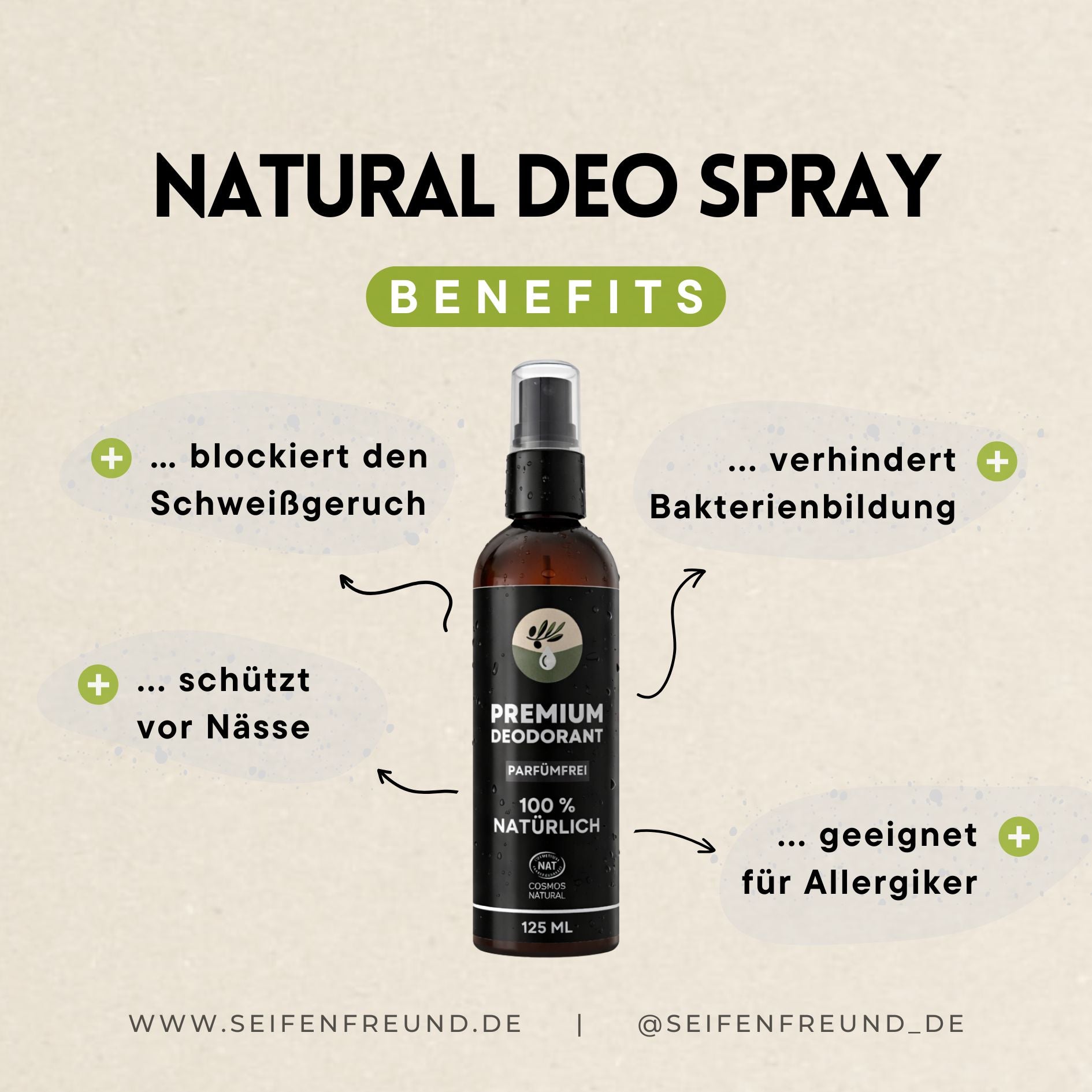 Wichtig: Für die beste Wirkung gut schütteln, auf saubere, trockene Haut sprühen und kurz einziehen lassen. ✨