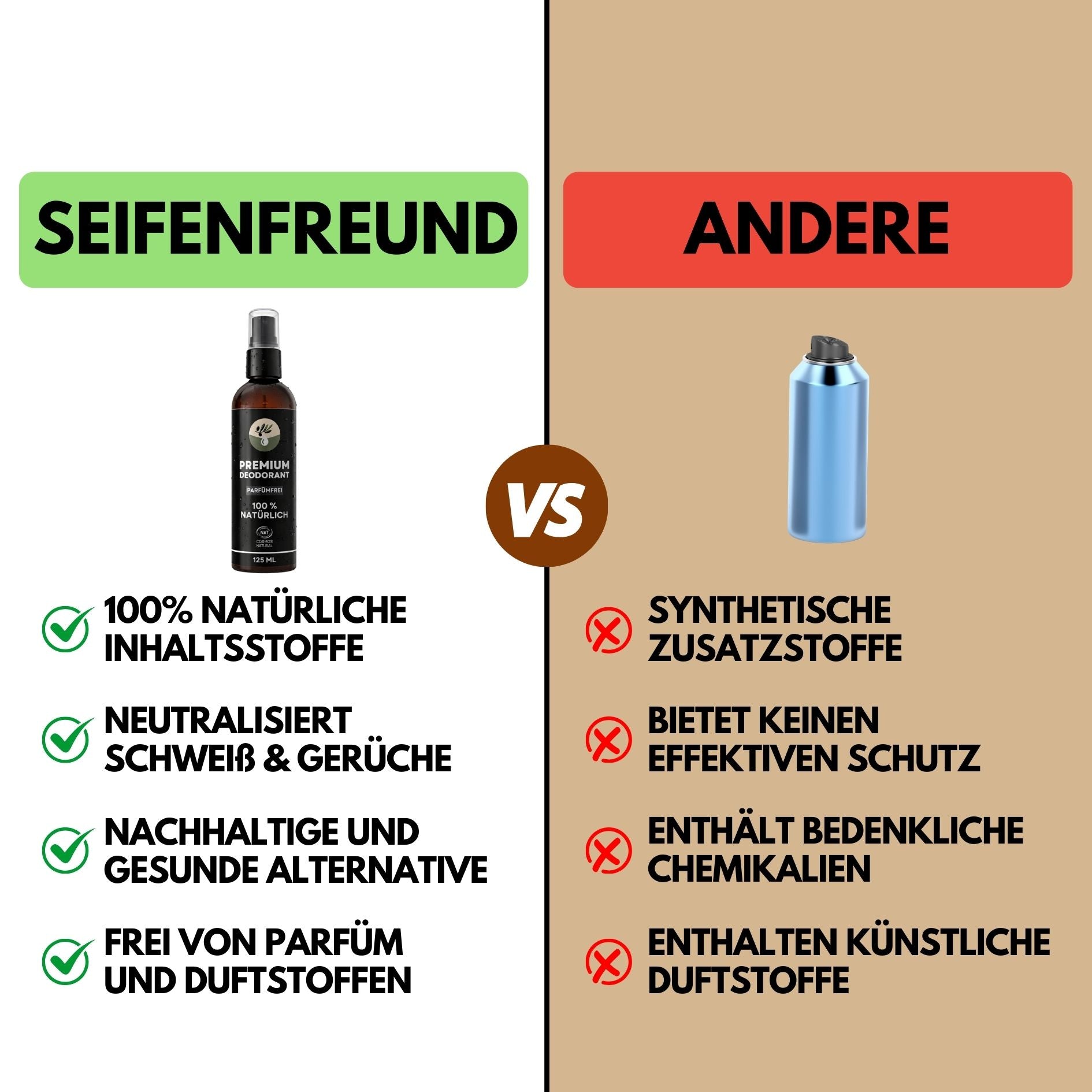 Unser Premium Natural Deodorant ist bewusst 100% natürlich & parfümfrei. Deshalb riecht es nicht „stark“, sondern neutralisiert Geruch, ohne Duftstoffe zu überdecken.